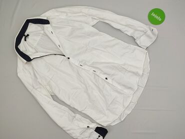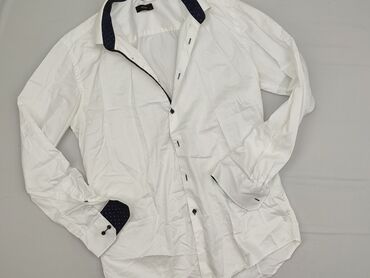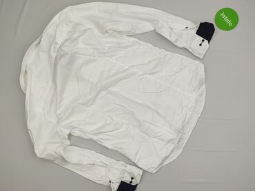 Biała koszula męska z długim rękawem, rozmiar M. - Klasyczny kołnierzyk, zapięcie na guziki na całej długości - Mankiety na guziki - Krój z zaokrąglonym dołem - Materiał: 100% poliester (informacj...