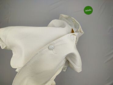 Biały damski żakiet z kołnierzem z klapami - Krój: lekko taliowany, długość do bioder - Zapięcie: pojedynczy guzik z przodu (metaliczny, trójkątny) - Kieszenie: dwie przednie kieszenie zapinane na...