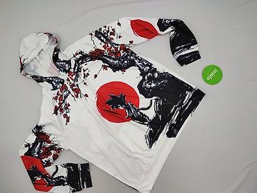 Bluza z kapturem męska, z nadrukiem inspirowanym stylem japońskim – białe tło, duże czerwone słońce, gałęzie wiśni oraz sylwetka młodego wojownika z kijem.