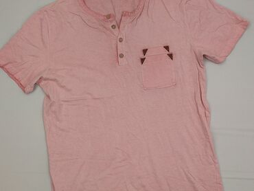 Koszulka męska In Extenso - Rozmiar: EU XL - Krój: klasyczny T‑shirt z krótkim rękawem i okrągłym dekoltem - Kolor/wzór: melanż różowo‑biały (delikatne, gęste prążki), kontrastowe białe lamówki pr...