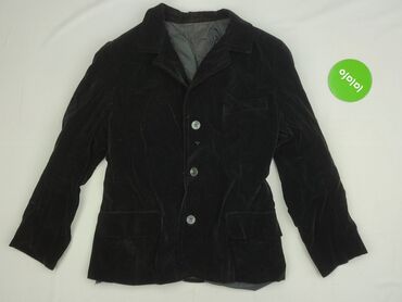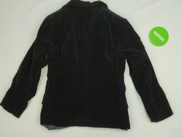 Czarny żakiet z aksamitu - Materiał: miękki, połyskujący welur/aksamit; podszyty od wewnątrz gładką podszewką. - Krój: luźniejszy, bez zapięcia (otwarta, miękko układająca się klapa), długość do b...