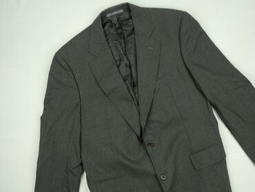 Męska marynarka garniturowa w kolorze szarym - Krój: klasyczny, jednorzędowy - Zapięcie: 2 guziki z przodu - Kołnierz: klapy klasyczne (notch lapel) - Tkanina: drobny, elegancki mikrowzór w paski/...