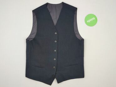 Męska kamizelka garniturowa – grafitowa - Klasyczny krój z dekoltem w serek - Zapięcie na 5 guzików z przodu - Dwie przednie kieszenie z listewkami - Tylna część z regulowanym paskiem i klamerką d...