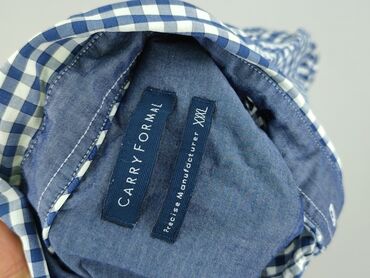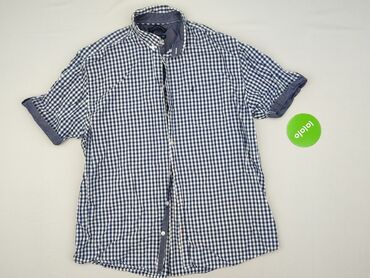 Koszula męska CARRY – krótki rękaw, rozmiar XL - Fason: regular - Wzór: drobna kratka vichy w odcieniach granatu, niebieskiego i bieli - Zapięcie: na guziki; listwa guzikowa w kontrastowym, niebie...