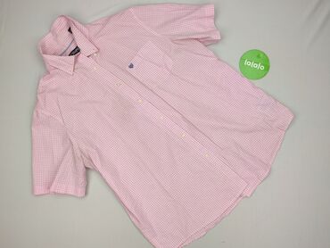 Koszula męska PEACOCKS, rozmiar S. - Krótki rękaw - Wzór: krata w kolorach różowym i niebieskoszarym - Materiał: 100% bawełna (metka widoczna na zdjęciu) - Zapięcie na guziki z przodu - Dwie kiesz...