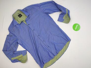 Męska koszula w odcieniu niebieskim z subtelnym wzorem w paski, idealna do noszenia na co dzień lub na specjalne okazje. Koszula posiada długie rękawy z mankietami zapinanymi na guziki oraz klasycz...