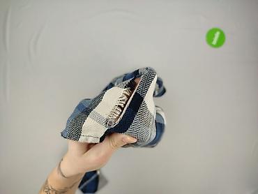 - Wzór: krata w odcieniach granatu, błękitu, szarości i bieli; splot w jodełkę widoczny w częściach kraty