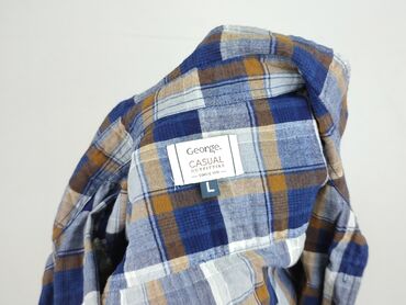 Koszula męska George – krótki rękaw, rozmiar L - Krój: klasyczna koszula zapinana na guziki - Rękaw: krótki - Kołnierzyk: standardowy - Wzór: krata w odcieniach bieli, błękitu, turkusu i granatu -...
