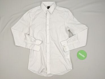 Koszula męska H&M - Fason: Slim Fit, Easy Iron (łatwiejsze prasowanie) - Rozmiar: M (EUR/US/CA/MX M), wzrost na metce: 180/100A - Kolor: biały w drobne, regularne kropki - Zapięcie: na guziki, man...
