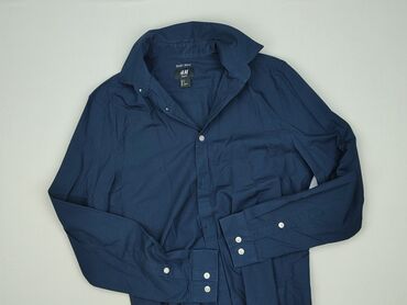Męska koszula H&M - Fason: Slim Fit, Easy Iron (łatwiejsze prasowanie) - Rozmiar: M (EU M / CN 175/100A) - Kolor: granatowy - Zapięcie: klasyczna listwa guzikowa z białymi guzikami - Kołnierzyk: k...Stan: