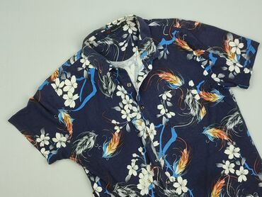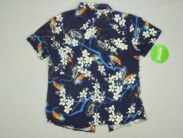 Koszula męska z krótkim rękawem w tropikalny wzór (liście palm) w odcieniach granatu. - Fason: zapinana na guziki, kołnierzyk klasyczny - Materiał: 100% bawełna (metka w środku) - Tkanina: lekka, ...