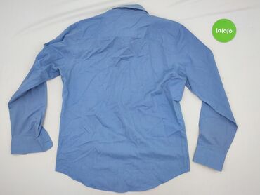 Biała koszula męska z długim rękawem, rozmiar M. - Klasyczny kołnierzyk, zapięcie na guziki na całej długości - Mankiety na guziki - Krój z zaokrąglonym dołem - Materiał: 100% poliester (informacj...