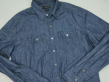 Koszula męska RESERVED, rozmiar XL - Model casual z kołnierzykiem, zapinany na guziki na całej długości - Tkanina w odcieniu melanżowego granatu/szarości (denimowy look) - Kontrastowe, ciemniejsze...
