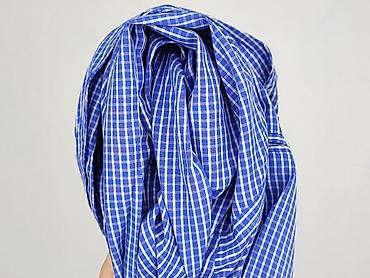 - Wzór: drobna kratka w odcieniach niebieskiego i bieli