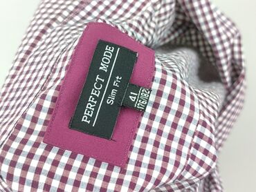 Koszula męska w paski - Krój: klasyczny, z kołnierzykiem i długim rękawem - Zapięcie: na guziki z przodu; mankiety także zapinane na guziki (po dwa) - Kolor i wzór: śliwkowy/bordo w wąskie białe, ...