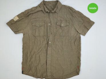 Męska koszula z krótkim rękawem, zapinana na guziki. - Rozmiar z metki: 40 / M (118/3) - Krój: klasyczny, kołnierzyk, listwa guzikowa z przodu - Wzór: krata - Kolorystyka: odcienie beżu/khaki z akc...