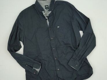 Męska koszula w paski, rozmiar XXL (43–44). - Kolor: ciemny grafit/czarny z drobnymi, pionowymi paskami w odcieniach bieli i szarości - Fason: klasyczny, zapinana na guziki, długi rękaw z mankietam...