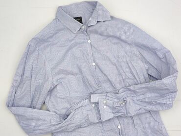 Męska koszula z długim rękawem, klasyczny krój - Materiał: 100% bawełna (metka “100% COTTON”) - Rozmiar z metki: KMA 41/42 - Kolor/wzór: granatowy z drobną, gęstą kratką/mikrowzorem - Zapięcie: pe...