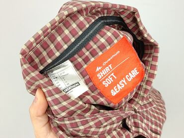 Koszula męska Quechua, krótki rękaw - Wzór: duża kratka w kolorach czerwonym, niebieskim, granatowym, białym i szarym - Fason: zapinana na guziki, kołnierzyk klasyczny - Kieszeń: jedna kieszeń na ...