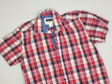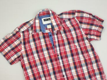Koszula męska w kratę, krótki rękaw - Wzór: wielokolorowa krata (czarny, zielony, niebieski, czerwony, żółty). - Fason: z kołnierzykiem, zapięcie na guziki w połowie długości (plisa kontrastowa w ...
