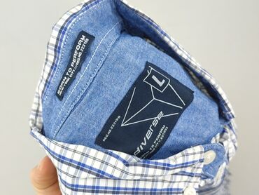 Koszula męska Diverse, rozmiar L. - Wzór: krata - Kolorystyka: granatowa baza z czerwonymi i białymi pasami - Fason: zapinana na guziki, kołnierzyk klasyczny - Rękawy długie z mankietami na guziki...