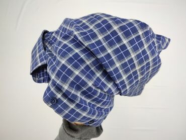 - Wzór: drobna krata w odcieniach granatu, błękitu i szarości