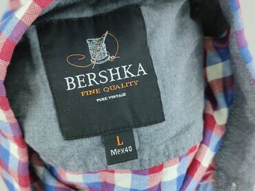 Koszula męska marki Bershka z długim rękawem, w kratę w odcieniach szarości i czerni. Posiada kołnierzyk i zapięcie na guziki, a także dwie praktyczne kieszenie na piersi zapinane na guziki. Mankie...