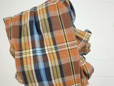 - Wzór: krata w odcieniach rudości, musztardy, oliwki, czerni i jasnego błękitu