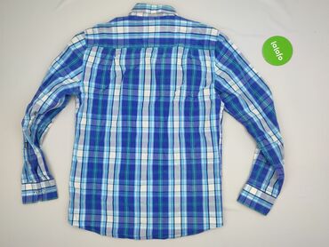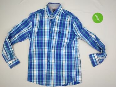 Męska koszula z długim rękawem, klasyczny krój - Materiał: 100% bawełna (metka “100% COTTON”) - Rozmiar z metki: KMA 41/42 - Kolor/wzór: granatowy z drobną, gęstą kratką/mikrowzorem - Zapięcie: pe...