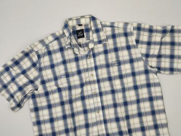 Koszula męska LAVIINO – krótki rękaw - Wzór: kratka w odcieniach niebieskiego, bieli i szarości - Materiał: 100% bawełna (metka: HONORED PRESENTATION) - Fason: klasyczny, z kołnierzykiem - Zapięci...