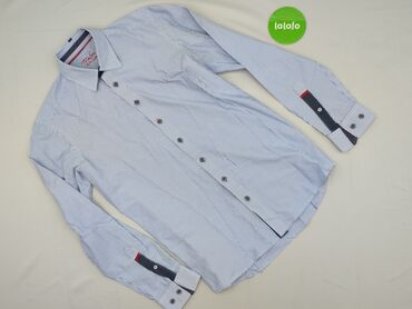 Męska koszula RESERVED Water Crew, krótki rękaw - Rozmiar: M (Comfort Fit – metka na zdjęciach) - Krój: luźniejszy, komfortowy - Kolor/wzór: jasnoniebieski w drobne, białe paski - Zapięcie: na guz...