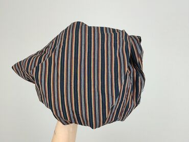 - Wzór: wąskie, pionowe paski w kolorach granatu, rdzawego, szarego i jasnobeżowego.