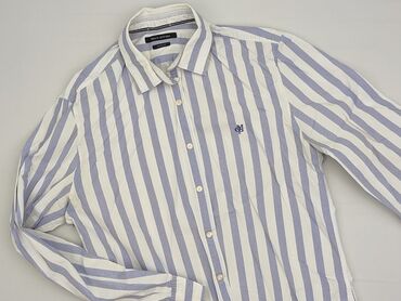 Biała koszula męska z długim rękawem, rozmiar M. - Klasyczny kołnierzyk, zapięcie na guziki na całej długości - Mankiety na guziki - Krój z zaokrąglonym dołem - Materiał: 100% poliester (informacj...