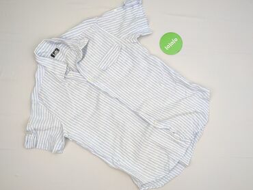Koszula męska z krótkim rękawem, błękitna. - Krój: prosta, lekko luźna sylwetka - Zapięcie: na guziki obciągane tkaniną (na całej długości) - Kołnierz: otwarty, rewersowy (camp collar) - Rękawy: k...