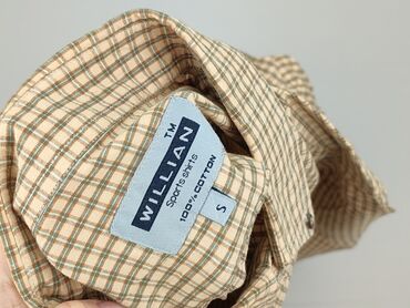 Koszula męska CAPITOL z krótkim rękawem - Kolor: biały - Kontrastowe detale: bordowe guziki, obszycia dziurek i wewnętrzna listwa; stójka/wnętrze kołnierzyka w drobną bordowo-białą kratkę - Kołnie...Męska koszula WILLIAN Sports Shirts