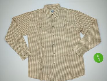 Męska koszula z długim rękawem w kolorze beżowym, wykonana z bawełny, co zapewnia komfort noszenia. Koszula posiada klasyczny kołnierzyk i zapięcie na guziki, a także dwie praktyczne kieszenie na p...