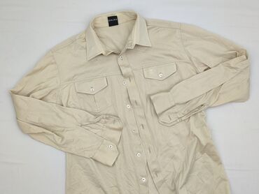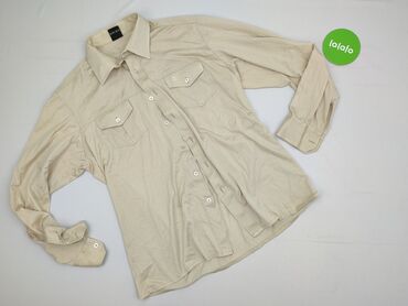 Męska koszula z długim rękawem w kolorze beżowym, wykonana z bawełny, co zapewnia komfort noszenia. Koszula posiada klasyczny kołnierzyk i zapięcie na guziki, a także dwie praktyczne kieszenie na p...