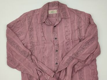 Męska koszula Old River, krótki rękaw, rozmiar L. - Fason: klasyczny, zapinana na guziki, kołnierzyk z usztywnieniem - Wzór: pionowe pasy w odcieniach beżu, różu i bieli - Kieszeń: jedna na piersi...