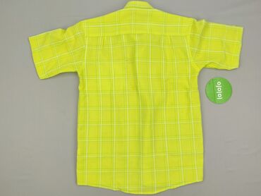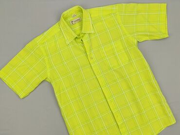 Męska koszula w kolorze limonkowym z krótkim rękawem, wykonana w 100% z bawełny, co zapewnia komfort noszenia i przewiewność. Posiada kołnierzyk i zapięcie na guziki, co nadaje jej klasyczny wygląd...