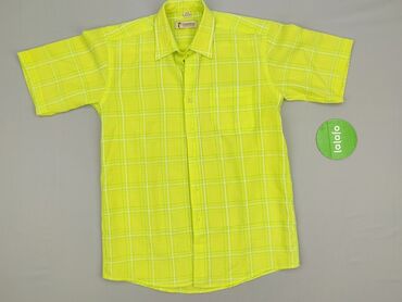Koszula męska CLEOPAT Collection - Krój: klasyczna koszula zapinana na guziki - Rękaw: krótki - Kołnierzyk: klasyczny - Kolor: jasny limonkowy z delikatnym, pionowym paskiem - Kieszeń: jedna piers...Stan: