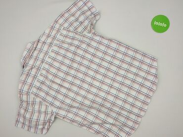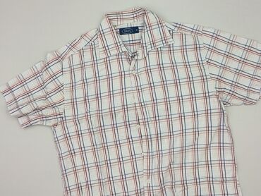 Koszula męska w kratę, krótki rękaw - Krój: klasyczny z kołnierzykiem - Zapięcie: pełny rząd guzików (niebieskie) - Wzór: drobna kratka w odcieniach bieli, niebieskiego i szarości - Kieszeń: jedna...