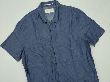 Koszula męska EX MEN’S SHIRTS z krótkim rękawem. - Kolor: błękitny z kontrastowym, białym kołnierzykiem. - Krój: klasyczny, z zaokrąglonym dołem i pojedynczą kieszonką na piersi. - Zapięcie: na gu...
