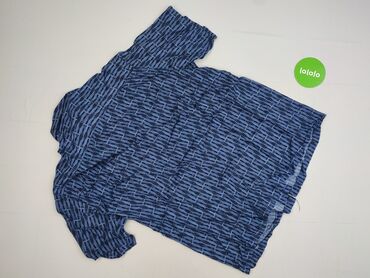 Męska koszula z krótkim rękawem NEW MODEL - Fason: klasyczny, zapinana na guziki z kołnierzykiem - Wzór: wyrazisty, geometryczno‑abstrakcyjny; miks granatu, błękitu, szarości, czerni i bieli - Mat...Stan: