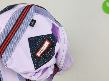 Męska koszula z krótkim rękawem SPEED.A, fason Slim Fit (rozmiar XXL / 42-43). - Kolor: biały z delikatnym, drobnym wzorem na całej tkaninie - Zapięcie: na guziki; listwa w granatowo-różowo-białe ...