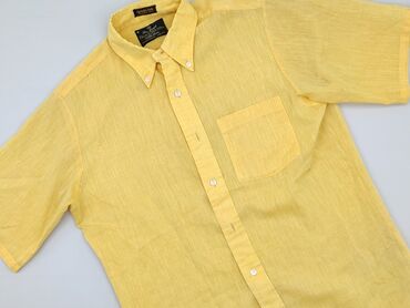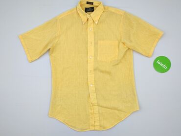 Męska koszula z krótkim rękawem w kolorze żółtym. Koszula posiada klasyczny kołnierzyk oraz jedną kieszeń na lewej piersi. Zapinana jest na guziki, a jej luźny krój zapewnia wygodę noszenia. Idealn...