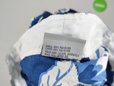 Szorty plażowe/hawajskie Forever – rozmiar M - Materiał: 100% poliester (metka na zdjęciu) - Kolor/wzór: intensywny niebieski z białymi hibiskusami i granatowymi motywami palm, surferów i łódek - ...