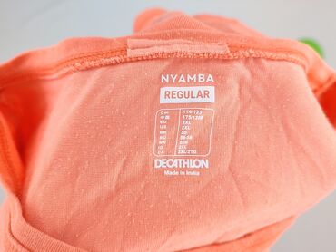 Granatowy t-shirt męski marki Decathlon z linii Nyamba, charakteryzujący się regularnym krojem. Wykonany z mieszanki bawełny, poliestru i elastanu, co zapewnia komfort noszenia i trwałość. Okrągły ...