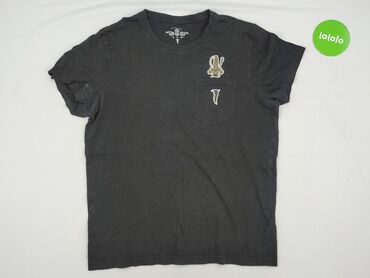 Czarna koszulka House Brand - Klasyczny T-shirt z krótkim rękawem - Kolor: czarny - Rozmiar z metki: L - Prosty krój z małą kieszonką na piersi - Okrągły dekolt - Miękka, cienka dzianina bawełnian...