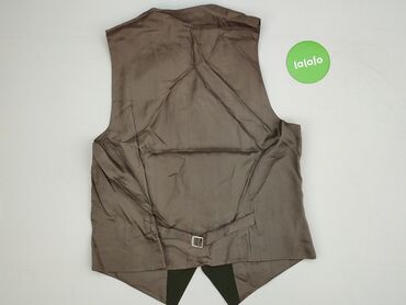 Męska kamizelka garniturowa w prążek - Kolor: oliwkowy/khaki z delikatnymi, jasnymi prążkami (pinstripe) - Krój: klasyczny, zapinana na 5 guzików, dekolt w kształcie V - Kieszenie: dwie frontowe w...