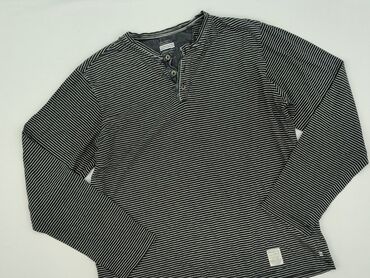 Męska koszulka z długim rękawem (longsleeve) w paski - Kolor: ciemny grafit/czarny z cienkimi białymi, poziomymi paskami na całej powierzchni - Krój: klasyczny, okrągły dekolt, długi rękaw - Nadru...Stan: